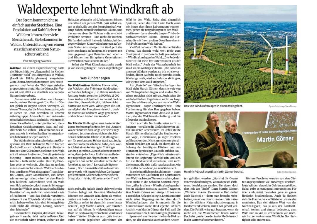 Waldexperte lehnt Windkraft ab