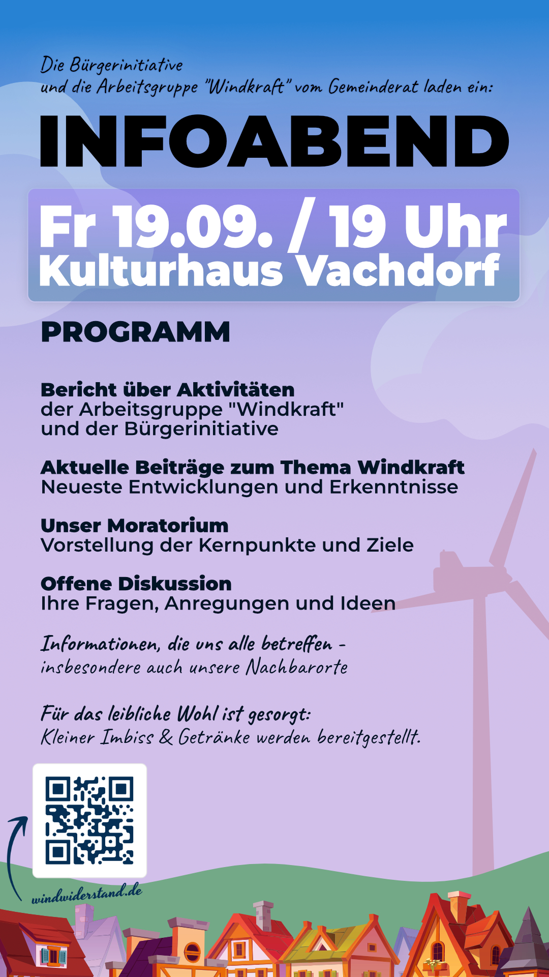 Die Bürgerinitiative „Mit Vernunft in die Zukunft“ und die Arbeitsgruppe "Windkraft" des Gemeinderats lädt alle Bürgerinnen und Bürger herzlich zu einem gemeinsamen Infoabend ein: